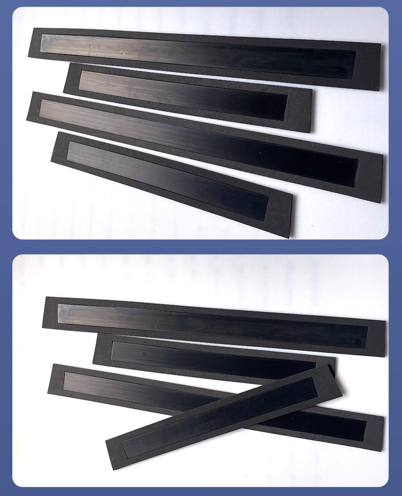 鐵路彈性墊板是以三元乙丙橡膠為主要原料,具備較強的減震性、舒緩老化性、耐磨性、穩(wěn)固性、抗高低溫性的一種材料,主要用于限位凹槽的四周,彈性緩沖墊層的作用是緩沖車輛通過軌枕時,產生的高速震動和沖擊,保護路軌和軌枕。適用于板式無砟軌道,為傳遞上部軌道結構的縱橫荷載,底座設置凹槽,灌注自密實混凝土形成凸臺;為緩沖作用在凸臺和凹臺上的縱橫力,降低用于溫度和收縮產生的束縛力,常在凹槽四個側面安置彈性橡膠墊層。